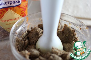 Измельчаем вместе с оставшейся жидкостью, имбирём и травами погружным блендером или пропускаем через мясорубку. Обратите внимание, чтоб чечевица не была сухой и не была жидкой, нужна очень пластичная консистенция, чтоб держала форму, но не была сухой. Формируем из измельчённой чечевицы колбаски.