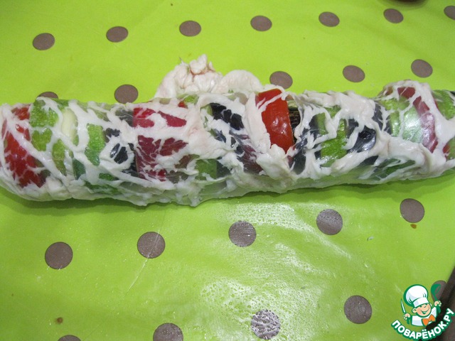 И завернуть в сальник в целях предохранения от утери ценных соков и более широкого обмена вкусами и ароматами между овощами.