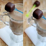 Я растопила молочный шоколад на водяной бане и добавила немного специй по своему вкусу. Растопленный горячий шоколад при помощи чайной ложечки я разлила по маленьким формочкам. В центр формочки я поместила палочку для мороженого и убрала все в холодильник до полного застывания. Когда шоколад полностью застыл, я с легкость вынула его из формочек. Палочки я украсила бумажными сердечками, которые я вырезала заранее. |