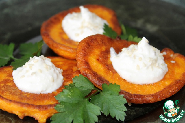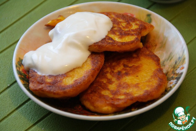 В остывшую тыкву добавить, постепенно перемешивая, растертый желток, муку, соль, манку и примешать взбитый белок.