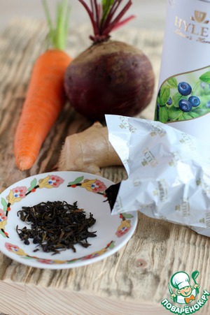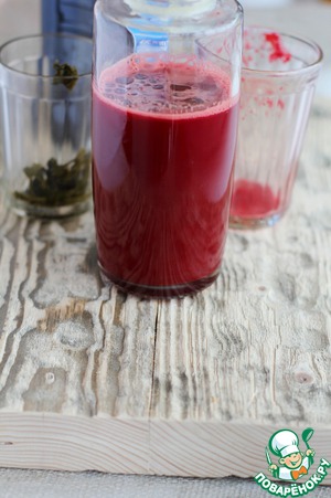 Теперь смешаем процеженный чай и сок. Не забудем достать из чая ягоды черники и добавить в смесь.