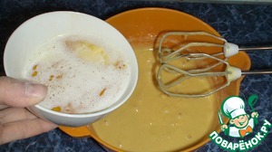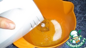 Яйца с сахаром взбить до светлого состояния в пышную массу.