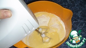 Просеять муку с разрыхлителем. В несколько приемов ввести муку в яичную смесь.