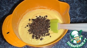 Настрогать плитку шоколада ножом не очень мелко, средними кусочками и всыпать в тесто. Тщательно вымешать.