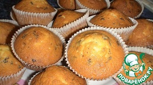 Все получилось доволно-таки спонтанно. Ребенок заказал пирог, но я что-то к пирогу не была готова морально, пообещала маффины. А сама думаю, с чем бы таким придумать их сделать, и в это время от моего сыночка следует вопрос - а кексики будут с шоколадом? Вот так и появились на свет маффины "Далматинцы" с кусочками шоколада.