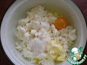 - Творог (300 г - в тесто; 200 г - в начинку) — 500 г