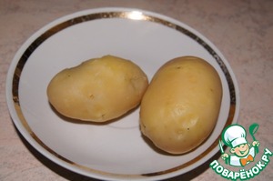 Картофель сварить в мундире, очистить и размять картофелемялкой.