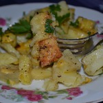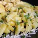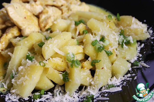 Готовую картошку достаем. И, в принципе, ее можно кушать и в таком виде (только перемешать перед подачей и посыпать зеленью)... -