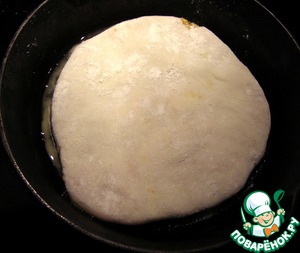 На середину уже раскатанной лепешки положить ложку начинки в центр.