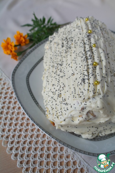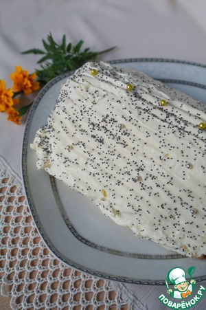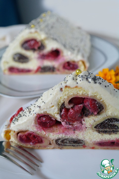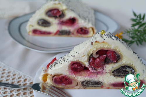 Рецепт «Творожная запеканка с блинами, маком и вишней»: