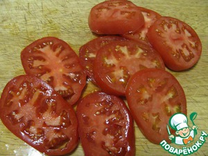 1.Помидоры очистить от кожицы и нарезать кружочками.