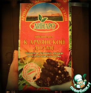 Хорошо замесив фарш, добавить специи. Если удастся найти приправу для долмы, будет ещё вкуснее.