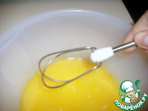 В желтки добавить половину горячих сливок, опять же тихонечко перемешать. Важно не взбивать смесь!