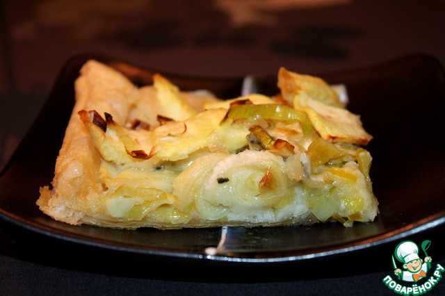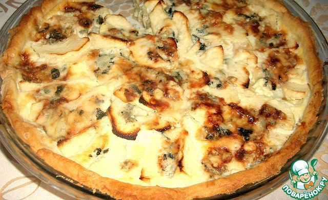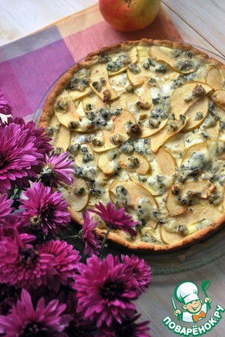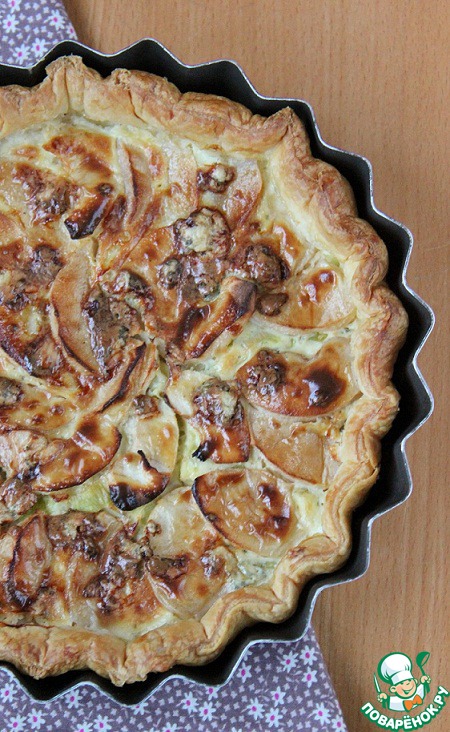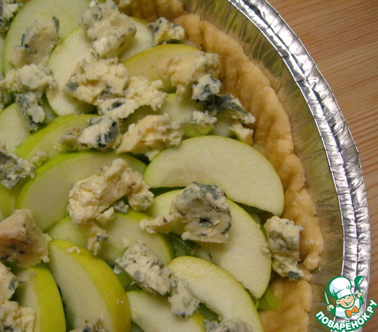[+5]Делала пол-порции в небольшой форме (19 см в диаметре), брала 2 груши и одно яблоко. Сыр полутвердый "Дорблу" с голубой плесенью 50 гр. Лук порей чуть потушила с добавлением сливочного масла, но вместо сливок и молока взяла только молоко. А еще у меня вверх начал пригорать (аэрогриль все таки), я положила на яблоки маленькие кусочки сливочного масла и накрыла фольгой. Выпекала 45 минут при температуре 195 градусов.