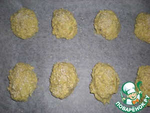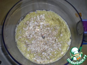 Чтобы придать фаршу густоту, добавьте в него овсяные хлопья. Мне хватило 4 столовых ложек. Вам возможно понадобиться еще. Тут многое зависит от творога. Фарш хорошо размешайте ложкой и поставьте его в холодильник минут на 30. Консистенция фарша должна быть в меру густая, чуть липкая…