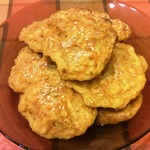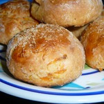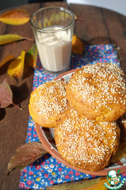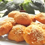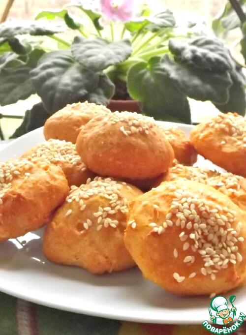 С помощью ложки разделите массу на 8 частей и мокрыми руками сформируйте лепешки. Я это делала прямо в руках. Уложите лепешки на бумагу для выпечки или силиконовый коврик. Посыпьте кунжутом.