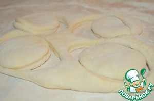 Остатки теста собираем и снова вырезаем. У меня ушло все тесто, и получилось ровно 16 кружков, которые идеально вписались на 1 лист противня.