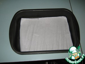 Форму для выпечки смазать маслом или застелить пекарской бумагой, у меня размер формы был 25 на 18 см.