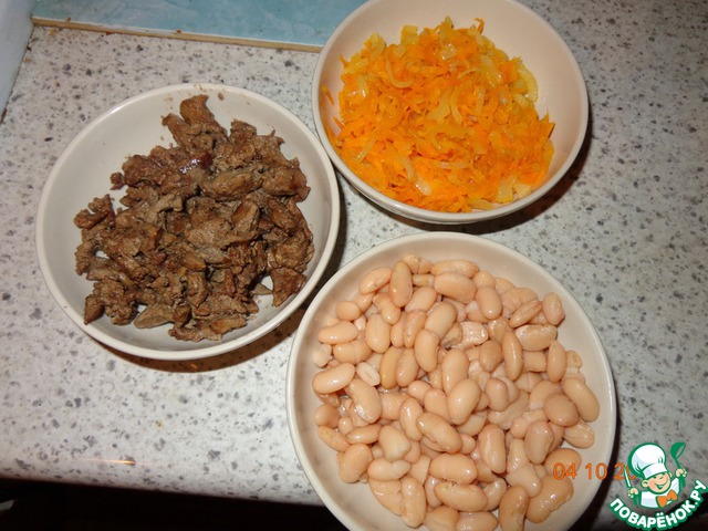 Фасоль у меня оказалась в наличии белая, консервированная, вообще, раньше варили красную фасоль долго-долго. Пойдет любая, какая есть в доме, хоть отварная, хоть консервированная, хоть красная, хоть белая, только не в томатном соусе.