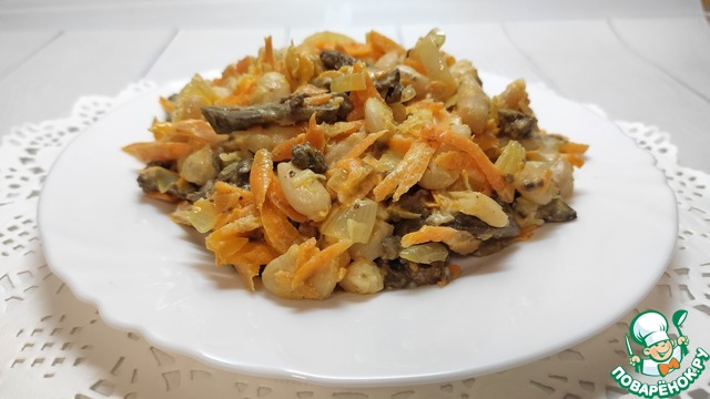 Очень удивилась, что не нашла такого рецепта на любимом "Поваренке". А родился он очень-очень давно, еще в конце 90-х, мы с подругой захотели салата из фасоли с мясом, но мяса в холодильнике не оказалось, зато была печень, в общем, голь на выдумки хитра, получился такой вот салатик. Очень уж он нам тогда понравился. Потом довелось мне поработать поваром в кафе, начальство попросило придумать новые блюда для меню, тогда я и среди других блюд предложила как вариант этот салат. Не поверите, но он прижился у нас с забавным названием "Фасолька".