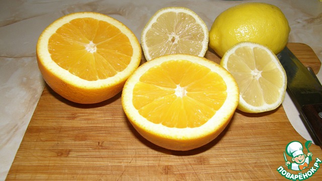 • Выжать сок из лимонов и апельсина