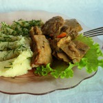 Сегодня в магазине увидела чудесные свиные рёбрышки. Ну не могла я пройти мимо, уж очень захотелось мне приготовить их в подливочке из яблок. Сами рёбрышки становятся сочными и мягкими, а подливка преобретает приятный яблочный вкус.