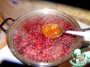Добавляем сахар и мед, пробуем на вкус, клюква - ягода кисло-горьковатая, поэтому подгоняем по своему вкусу.