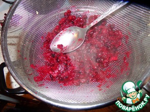 Снимаем кастрюлю с огня, процеживаем через сито, затем ягоду протираем. Жмых выбрасываем. Он нам не нужен. Ставим обратно на огонь. Доводим до кипения, добавляем имбирь (у меня в наличии был молотый, поэтому им и воспользовалась).