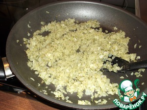 20 г топлёного масла разогреваем на сковороде, добавляем в масло порезанный лук, рубленую зелень петрушки и майорана. Майорана у меня свежего не было - заменила сухими итальянскими травами.