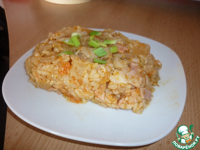 Пока варится рис,я сделала ветчину с зажаркой,кинула рис и вуаля - ужин готов!!!!