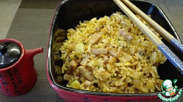 Это японское блюдо на скорую руку. Готовится быстро и просто, тем более, если есть готовый вареный рис. Его ещё можно назвать вариантом домашнего японского плова.