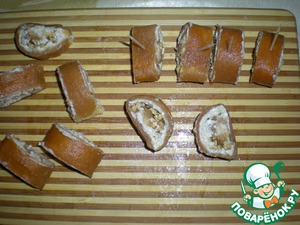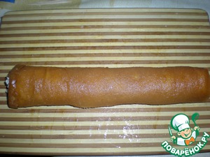 Нарежьте рулет на мелкие рулетики шириной 1- 1,5см.