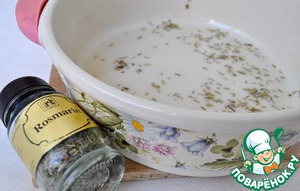 В форму для запекания наливаем масло и всыпаем розмарин.