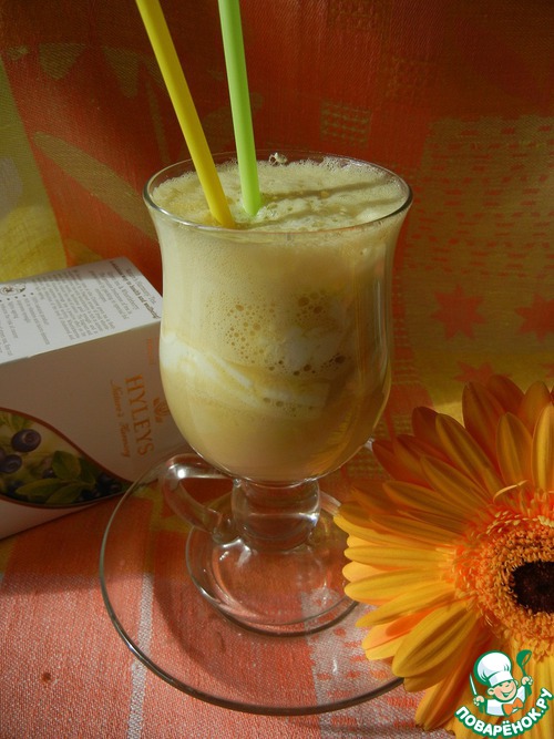 Затем добавляем 4-6 кубиков льда и взбиваем с помощью шейкера до появления пены. Шейкера у меня нет, и я воспользовалась блендером.