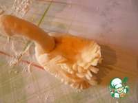 Стол посыпать крахмалом и раскатать кусочек мастики для крыльев и хвоста. |