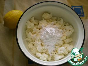 Творог смешать с сахарной пудрой, лимонной цедрой и лимонным соком.