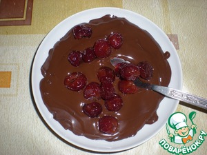 Растопите в микроволновке шоколад. Положите в него 16 вишен.
