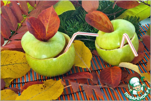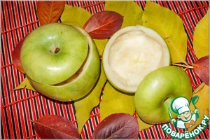 Пока чай стынет, срежьте шляпу у яблок и аккуратно выньте серединку чайной ложкой, чтобы получились стаканчики.