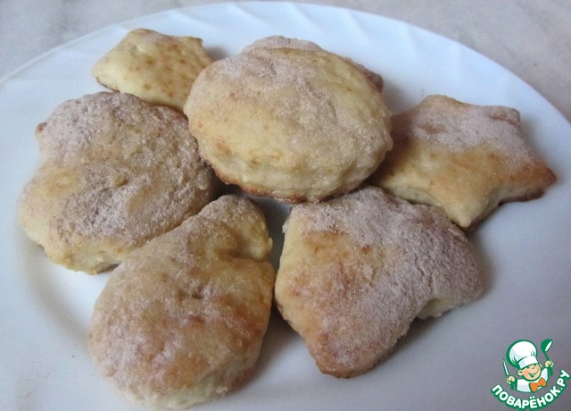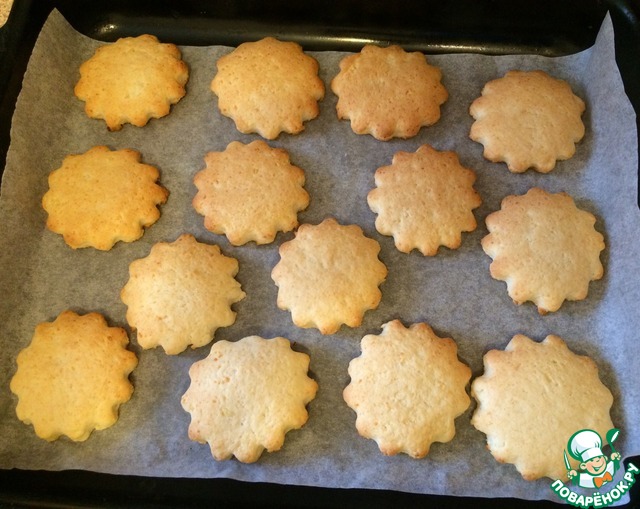 Ингредиенты: Для 600 г печенья: Муки 1 стакан, Творога 200 г, Масла 100 г, Яйцо 1, Сахарного песку 1/2 стакана, Соды 1/4 чайной ложки, Лимон 1.