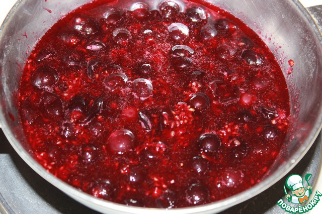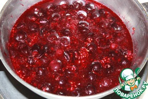 Снимите смесь с огня. Добавьте ягодное пюре, перемешайте и охладите.