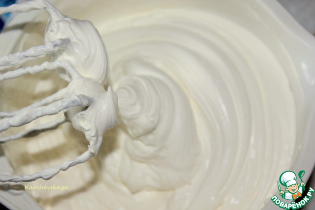 Взбивайте охлажденные сливки миксером до густого состояния.