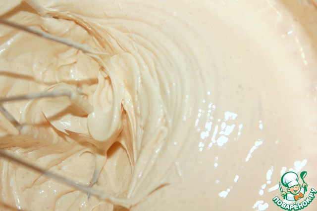 Желтки с сахарной пудрой взбивайте 5-7 минут. Масса должна стать плотной и увеличиться в объеме.