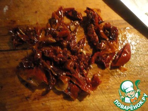 Вяленые помидоры режем полосками. Кстати, я их вялила вот по этому рецепту: http://www.povarenok .ru/recipes/show/493 76/ Спасибо juliamir за рецепт. Пользуюсь им постоянно.