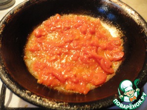 Поджарить на нем помидоры до мягкости. У меня была очень соленая брынза, поэтому помидоры я не подсаливала. -