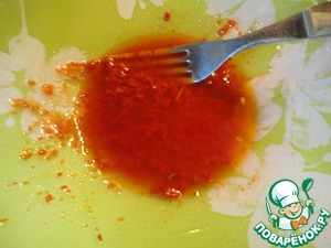 Чайную ложку томатной пасты залить 3-4 ст. л. оливкового масла.