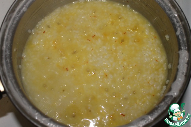 Через 10 мин. после закипания можно добавить шафран, тогда наши апельсинки приобретут радостно-оранжевый цвет