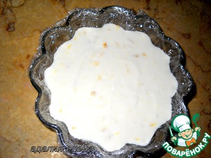 Глубокую форму диаметром 18 см (20 см) застелить пленкой и налить в нее крем. Поставить в холодильник до застывания.