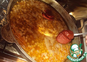 Когда уйдет вода, палочкой протыкаем 6-8 раз до дна в разных местах, накрываем крышкой и ставим на маленький огонь на 30 мин., крышку до готовности не поднимать.