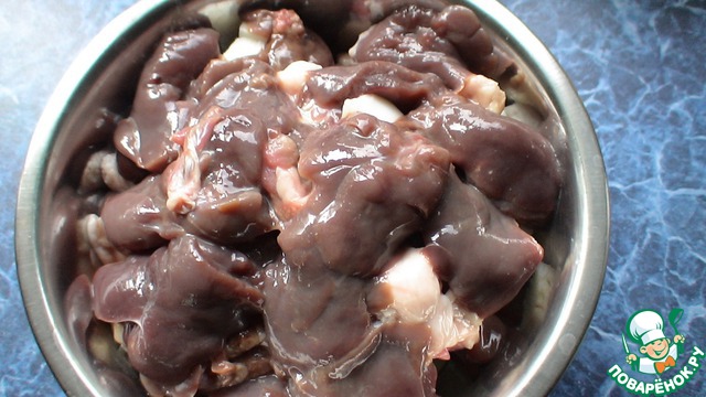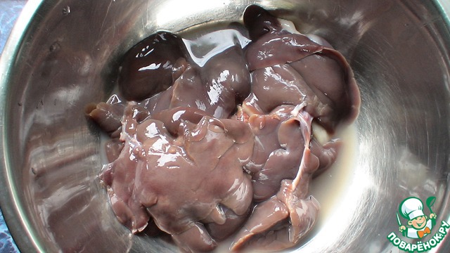 • Печень залить молоком и выдержать в молоке 2-3 часа. Если печень говяжья, я вымачиваю ночь, предварительно нарезав на куски и зачистив от пленки и протоков. Спустя указанное время, печень промыть.