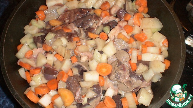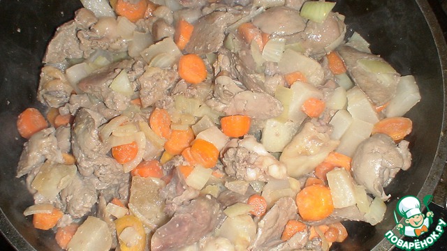 • Выкладываем в термостойкую посуду, накрываем крышкой. Отправляем в разогретый до t=180 С духовой шкаф на 30 минут.